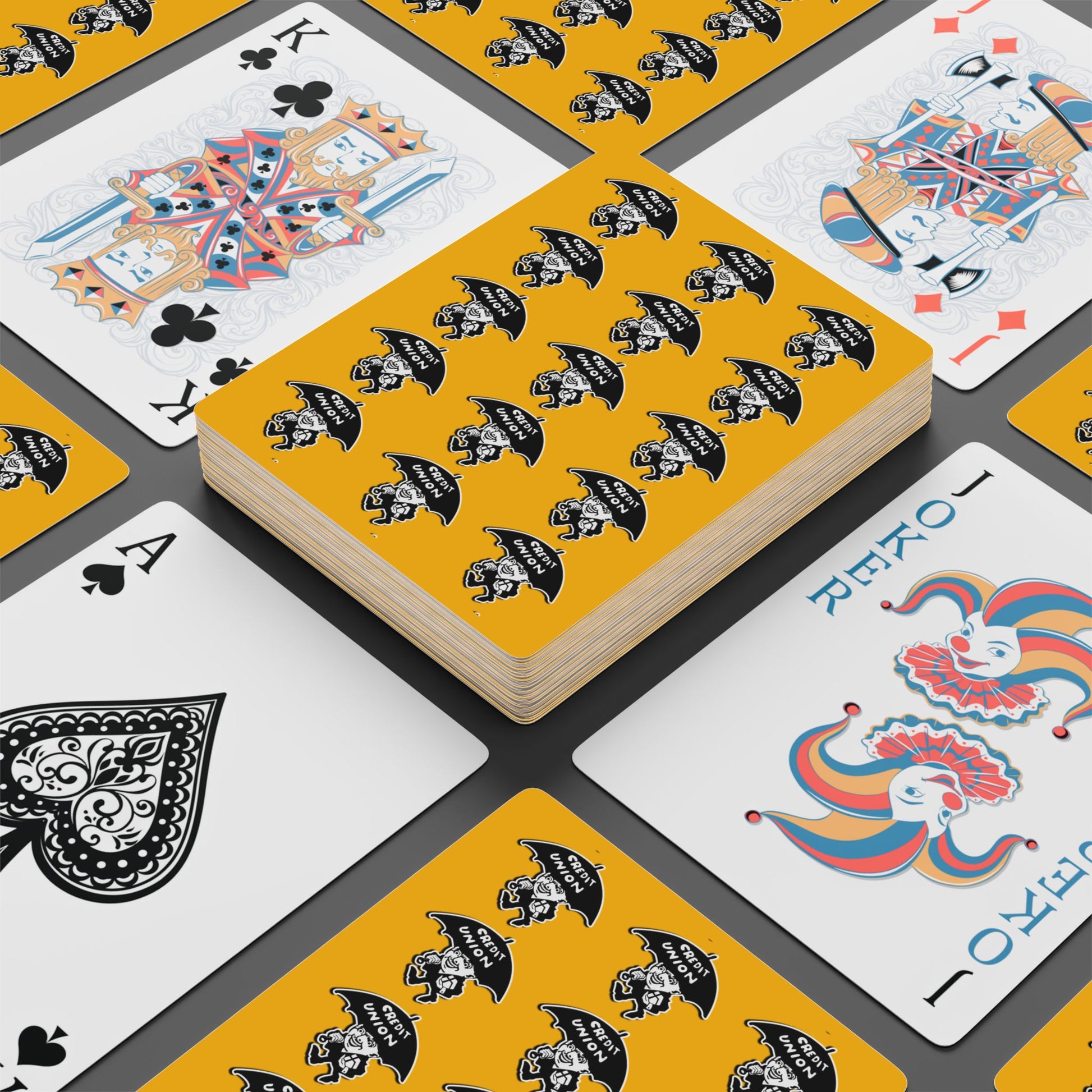 Credit Union Umbrella Man Playing Cards